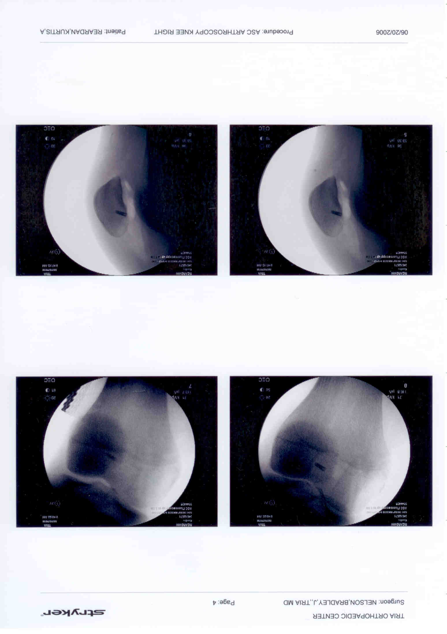 Four X-rays views of the knee with pin